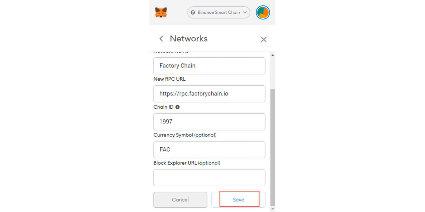 ➥ A moeda FAC (a moeda nativa da rede Factory Chain) será usada para pagar as taxas de gás