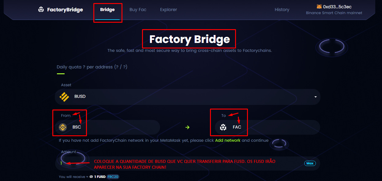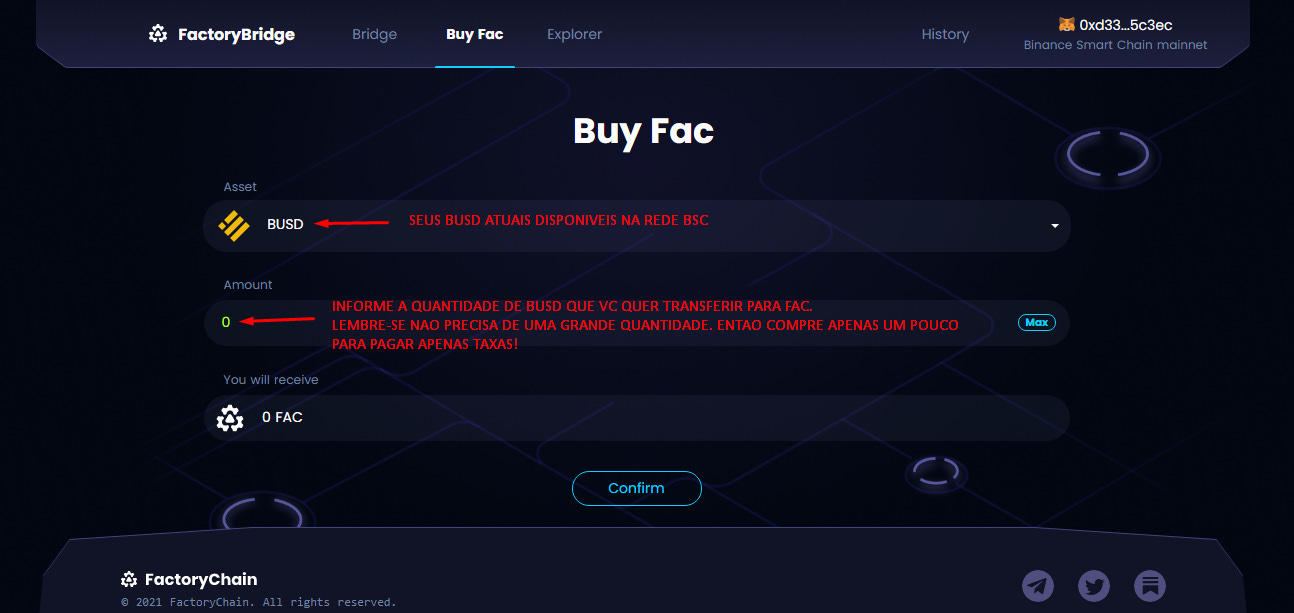 ➥ Acesse este site: https://bridge.factorychain.io/buyfac