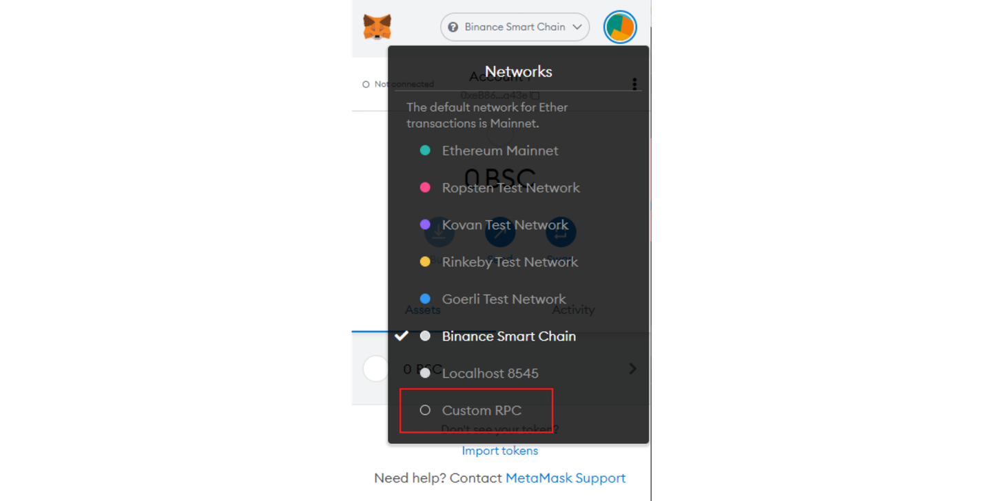 ➥ Escolha RPC personalizado e insira as seguintes informações: