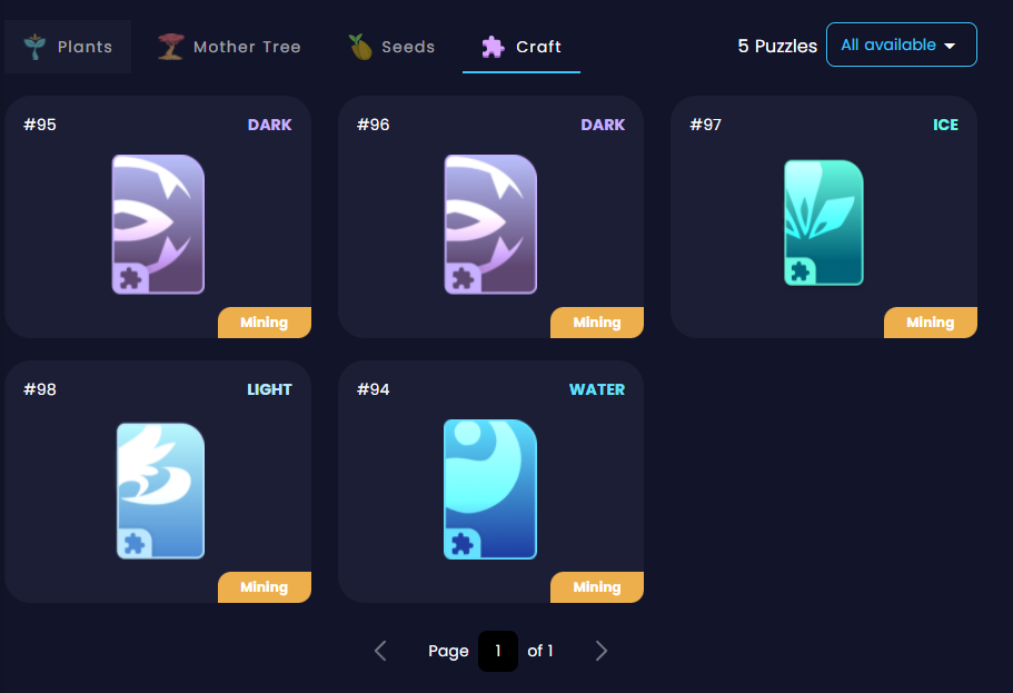 Fragmentos de plantas são recompensas NFT para este beta. Cada fragmento requer 24 horas para concluir o processo de mineração. Para criar uma planta com o elemento de sua escolha, você precisa combinar 20 fragmentos do elemento desejado. Para aumentar a chance de obter uma raridade maior, você pode gastar mais 0 ~ 30 fragmentos (estes são opcionais e qualquer elemento pode ser usado) para aumentar sua chance de raridade. Quanto mais fragmentos você usa, mais oportunidade de obter uma planta rara ou mesmo mítica.